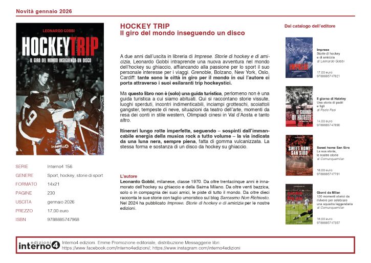 In occasione delle Olimpiadi e delle Paralimpiadi di Milano Cortina 2026 Leonardo Gobbi (già autore di Imprese. Storie di hockey e di amicizia, 2024) e Interno4 edizioni celebrano l’amore per lo sport più veloce…