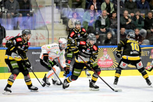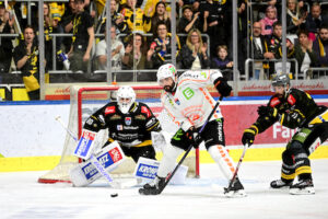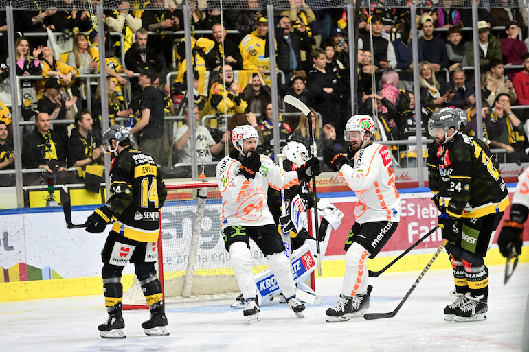 Il Graz si presenta così stasera a Brunico per giocarsi il primo match point scudetto. Gara 4 inizia in modo molto simile ai precedenti incontri con una fase iniziale abbastanza equilibrata, con i 99ers che riescono a passare in vantaggio per primi con Roy abile a sfruttare un errore in fase di disimpegno di Almquist (0-1). I Lupi contrattaccano subito e 3’ più tardi impattano grazie a un tiro dalla sinistra di Ticar che si infila in mezzo ai gambali di Wieser (1-1). Il flusso offensivo dei padroni di casa non si interrompe, e al 14’ i gialloneri passano in vantaggio per la prima volta in questa serie finale con Frycklund in power play (2-1). Il secondo tempo inizia con occasioni per entrambe le squadre, finché al 30’ Koch riesce a sfruttare un rimbalzo fortunato per spingere il disco oltre la linea di porta e realizzare il gol del pareggio (2-2). I drittel finale inizia con una grande occasione per il Val Pusteria con Bowlby che in contropiede, solo davanti alla porta, si fa chiudere lo specchio da Wieser cogliendo